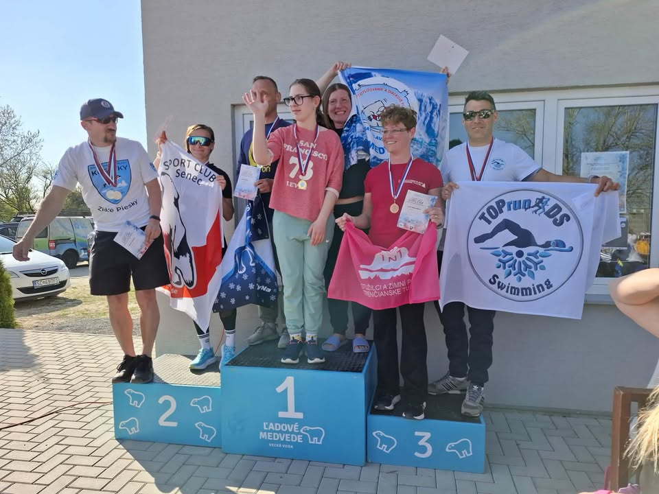 A napsütéses, jó hangulatú eseményen – amelyet a Ľadové Medvede Veľká Voda szervezett – a víz hőmérséklete ugyan még csak 9 fok körül alakult, de ez sem szegte kedvét a versenyzőknek. A dunaszerdahelyiek népes csapattal érkeztek, és szinte minden számban dobogós helyezésekkel tértek haza.